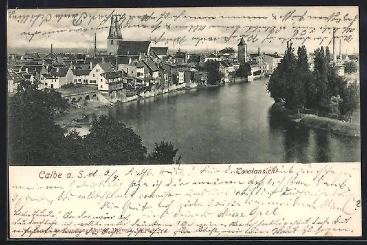 AK Calbe a. S., Ortsansicht mit Flusspartie