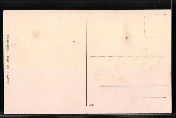 Personenbezogene Daten auf der Rückseite der Karte wurden durch blauen Textmarker unkenntlich gemacht. Die blauen Stellen sind auf die Vorderseite durchgeweicht und wirken sich negativ auf das Postkartenfoto aus