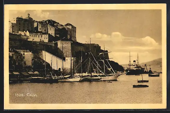 AK Calvi, vue du port avec des voiliers et un bateau à vapeur