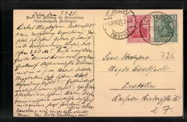alte Ansichtskarte, gelaufen 1920, guter Zustand