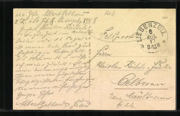 gelaufen 1917 als Feldpost, guter Zustand
