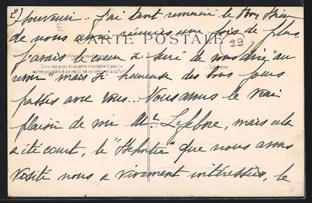 Personenbezogene Daten auf der Rückseite der Karte wurden durch blauen Textmarker unkenntlich gemacht. Die blauen Stellen sind auf die Vorderseite durchgeweicht und wirken sich negativ auf das Postkartenfoto aus