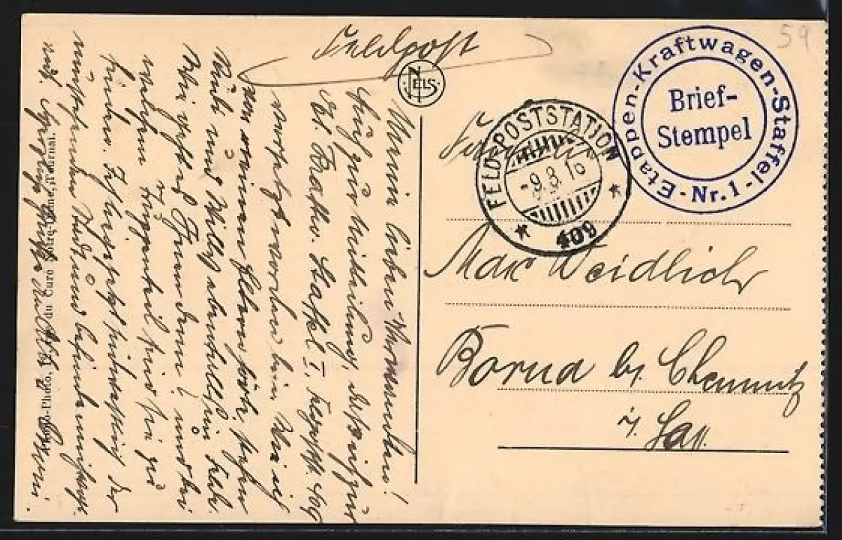alte Ansichtskarte, gelaufen, Eckknick re. unten, Stempelspur, guter Zustand
