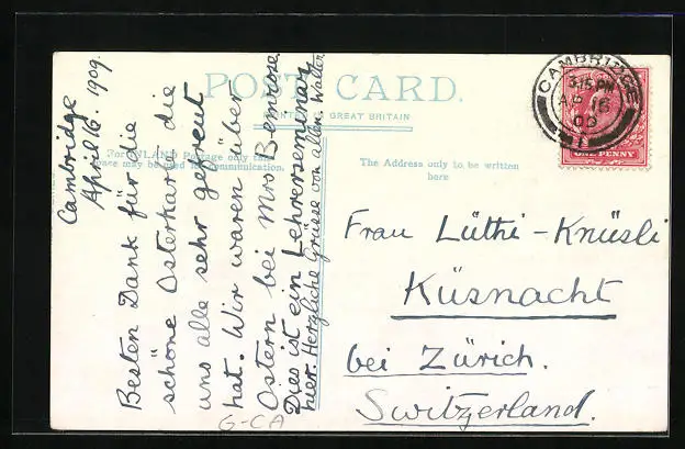 alte Ansichtskarte, gelaufen 1909, guter Zustand