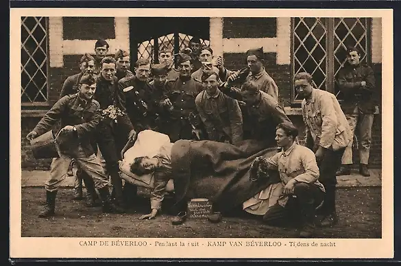 AK Camp de Beverloo, Soldatenhumor Kameraden wecken Langschläfer