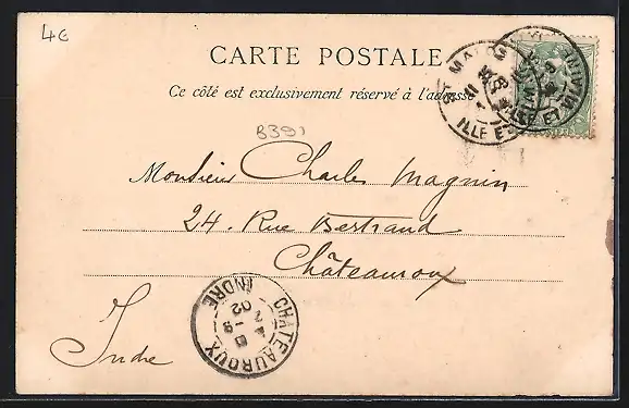 alte Ansichtskarte, gelaufen 1902, Stempelspur, Abriebspur li. oben, guter Zustand