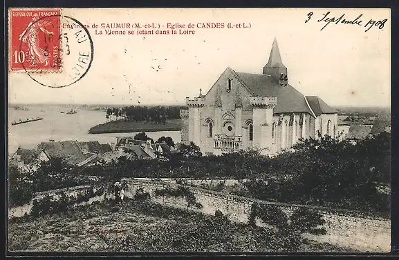 AK Candes, Église et la Vienne se jetant dans la Loire