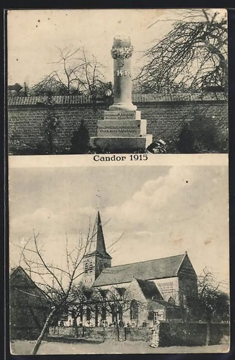 AK Candor, Monument commémoratif 1914-1915 et église du village