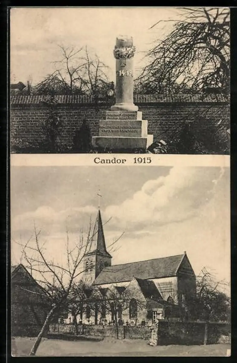 AK Candor, Monument commémoratif 1914-1915 et église du village