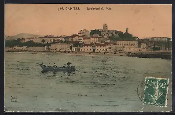 AK Cannes, Boulevard du Midi, vue sur la mer avec bateau