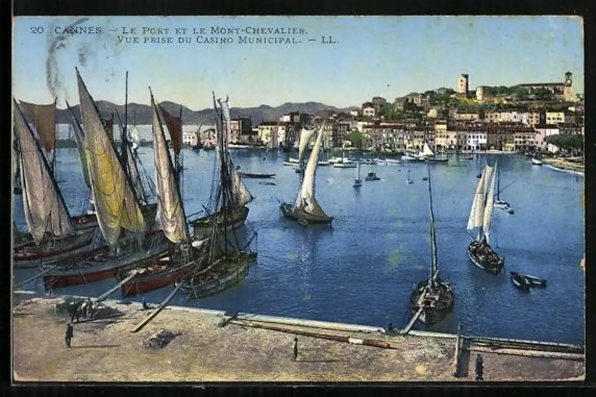 AK Cannes, Le Port et le Mont-Chevalier, Vue prise du Casino Municipal, Hafen