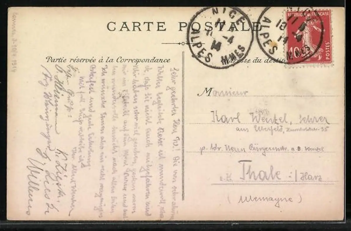 alte Ansichtskarte, gelaufen 1914, Stempelspur, guter Zustand
