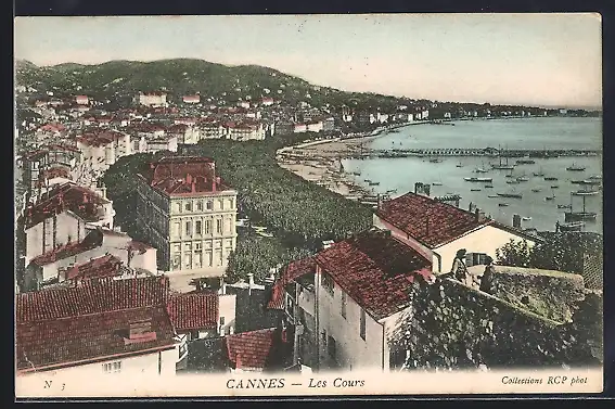 AK Cannes, Les Cours et vue sur le port avec bateaux