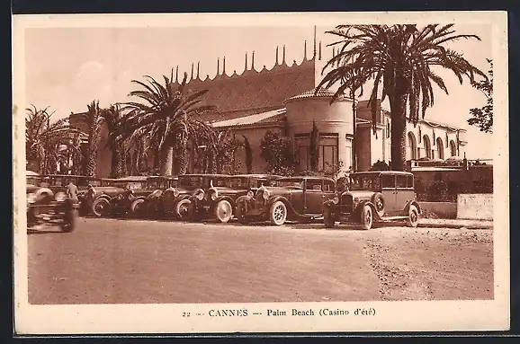 AK Cannes, Palm Beach avec voitures anciennes