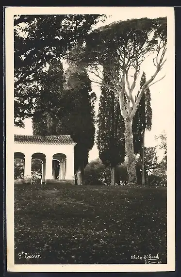 AK Cannes, Vue sur le jardin ombragé de St Cassien avec pavillon et grands arbres