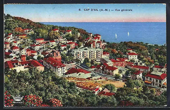 AK Cap d`Ail, Vue générale avec la mer en arrière-plan et des voiliers