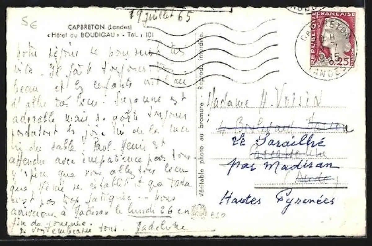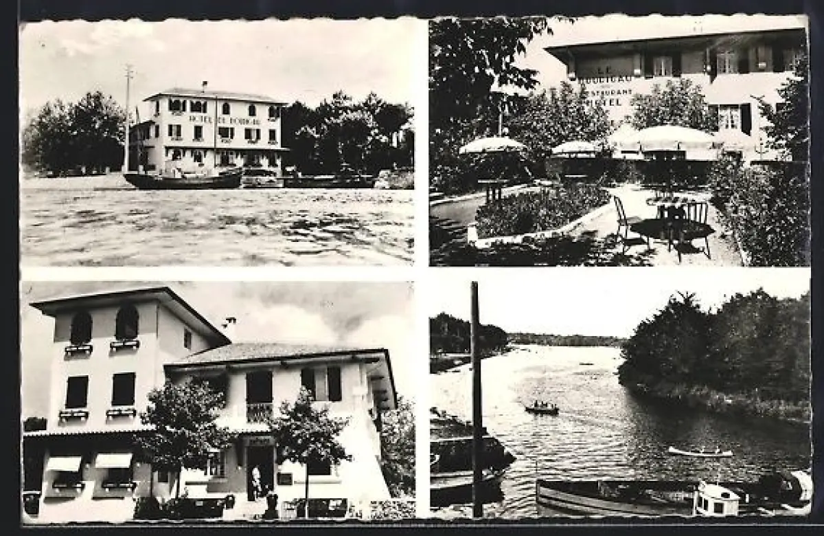 AK Capbreton /Landes, Hôtel du Boudigau avec vue sur le canal et terrasse ombragée