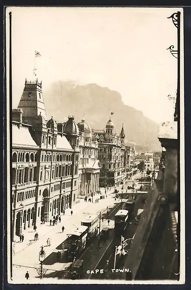 AK Cape Town, Strassenpartie mit Strassenbahnen
