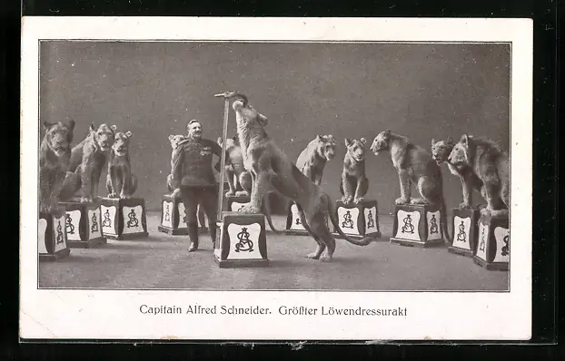 AK Capitain Alfred Schneider, Grösster Löwendressurakt, Zirkus
