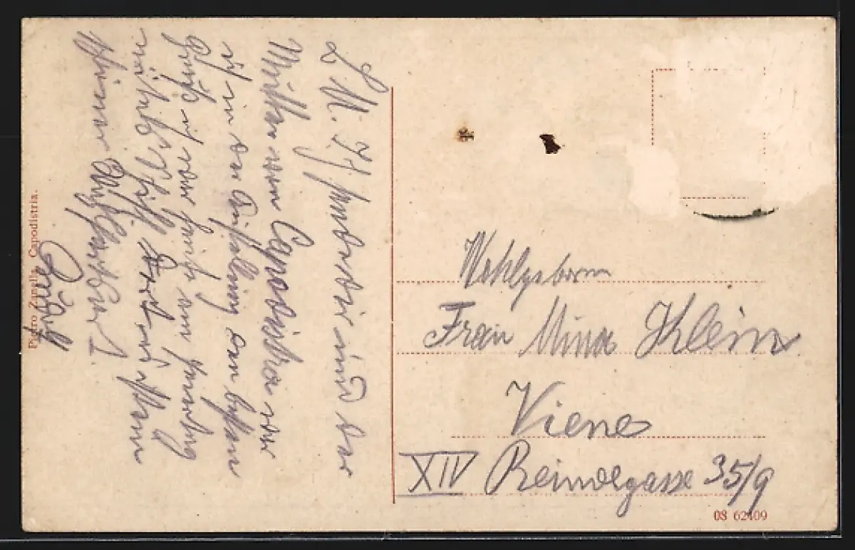 alte Ansichtskarte, gelaufen, Briefmarke entfernt, rückseitig Oberflächenschaden, Abriebspur re. oben, guter Zustand