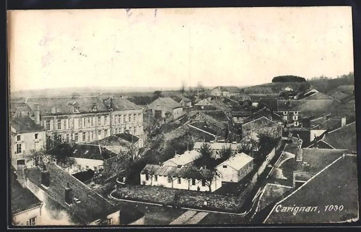 AK Carignan, Vue aérienne des toits et bâtiments du village