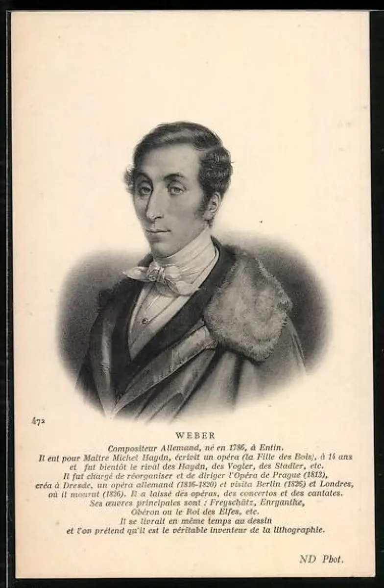 AK Carl Maria von Weber, Porträt mit Kurzbiographie im Passepartout