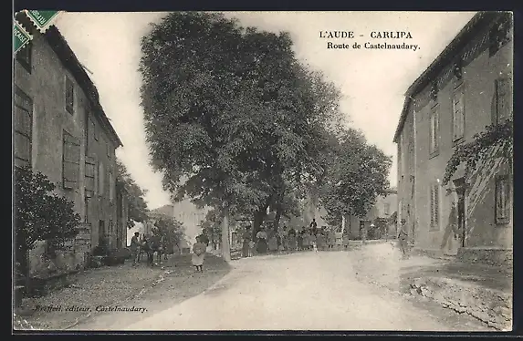 AK Carlipa, Route de Castelnaudary avec des passants et des bâtiments adjacents