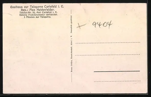 AK Carlsfeld i. E., Gasthaus Talsperre, Bes.: Max Heidenfelder