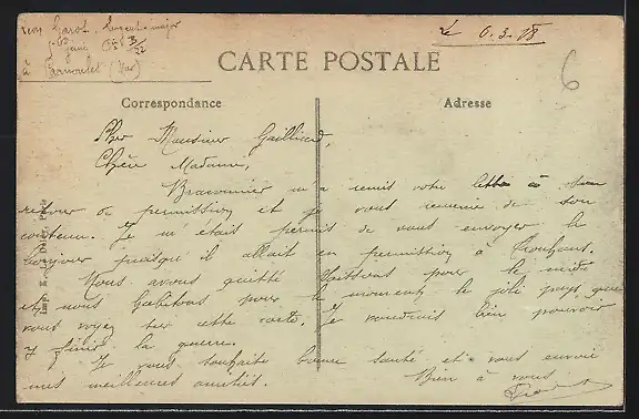Personenbezogene Daten auf der Rückseite der Karte wurden durch blauen Textmarker unkenntlich gemacht. Die blauen Stellen sind auf die Vorderseite durchgeweicht und wirken sich negativ auf das Postkartenfoto aus