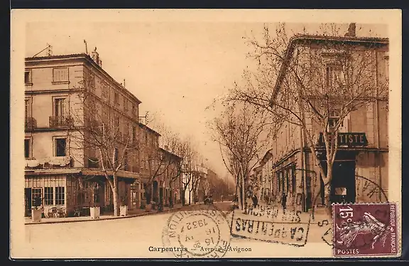 AK Carpentras, Avenue d`Avignon avec bâtiments et arbres en hiver