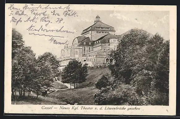 AK Cassel, Neues Kgl. Theater v. d. Löwenbrücke aus gesehen