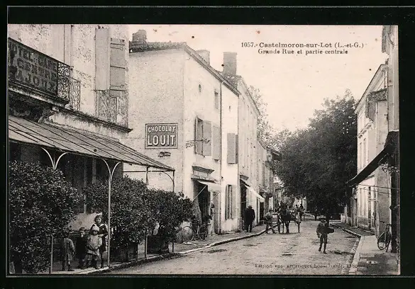 AK Castelmoron-sur-Lot, Grande Rue et partie centrale, Chocolat Louit