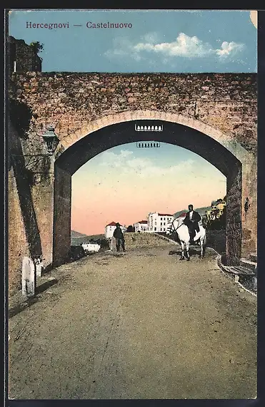 AK Castelnuovo, Ortsansicht, Partie unter einem Torbogen
