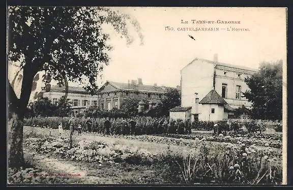 AK Castelsarrasin, Vue de l`Hôpital et du jardin attenant