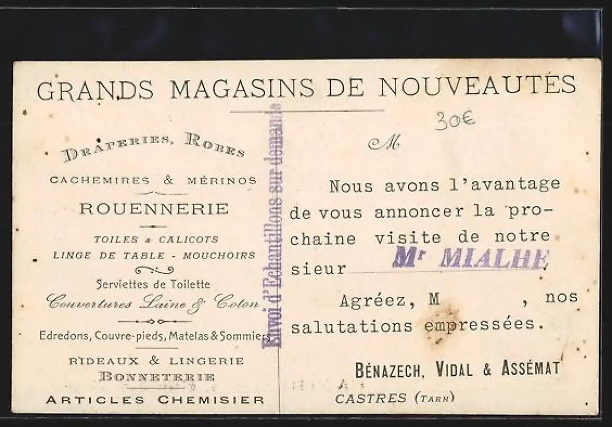 AK Castres, Magasin Bénazech Vidal & Assémat, 4 Rue Gambetta, vue extérieure des étalages de draperies