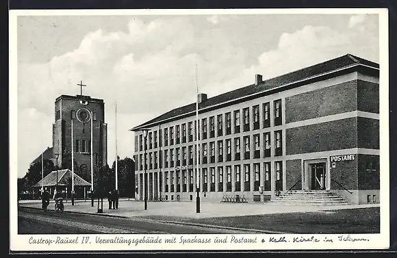 AK Castrop-Rauxel, Verwaltungsgebäude mit Sparkasse und Postamt