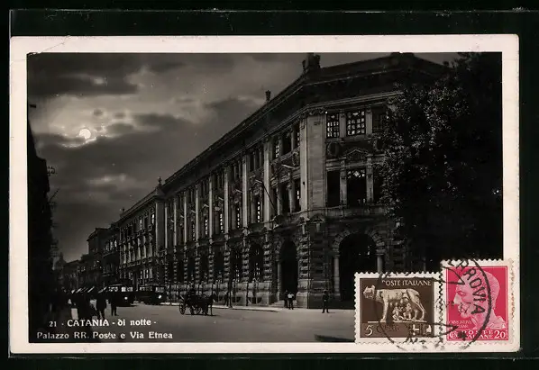 AK Catania, Palazzo RR. Poste e Via Etnea, di notte