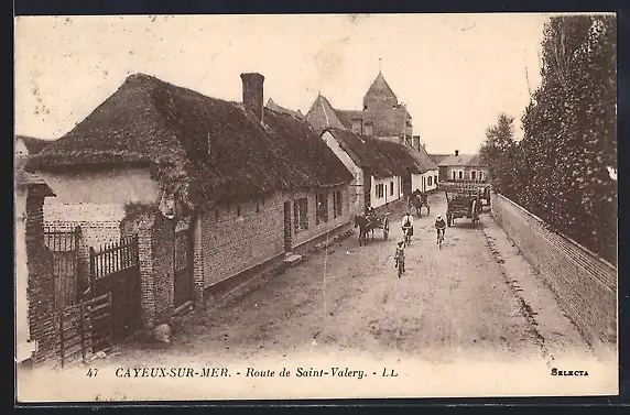 AK Cayeux-sur-Mer, Route de Saint-Valery avec maisons et charrette