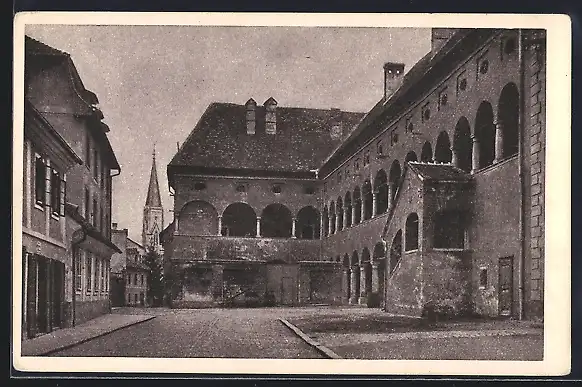 AK Celje, Strassenpartie mit Blick zur Kirche