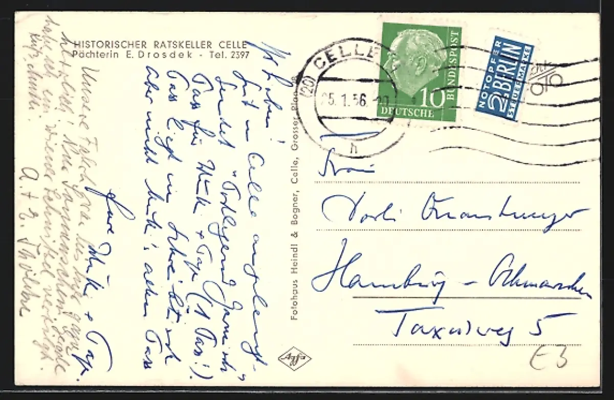 AK Celle, Historischer Ratskeller, Innenansicht, Pächterin E. Drosdek