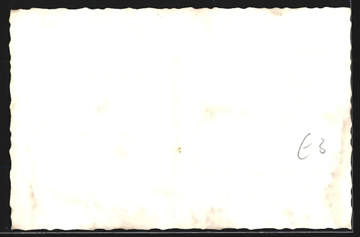 Personenbezogene Daten auf der Rückseite der Karte wurden durch blauen Textmarker unkenntlich gemacht. Die blauen Stellen sind auf die Vorderseite durchgeweicht und wirken sich negativ auf das Postkartenfoto aus