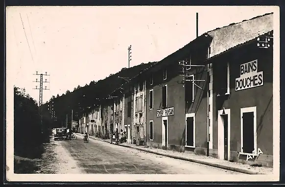 AK Celles, Quartier du Grand Chemin avec enseignes Bains Douche et Épicerie Paysan