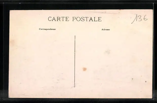 Personenbezogene Daten auf der Rückseite der Karte wurden durch blauen Textmarker unkenntlich gemacht. Die blauen Stellen sind auf die Vorderseite durchgeweicht und wirken sich negativ auf das Postkartenfoto aus