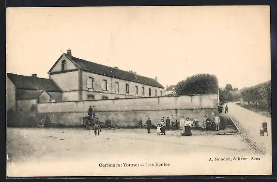 AK Cerisiers /Yonne, Les Écoles et enfants jouant devant le bâtiment scolaire