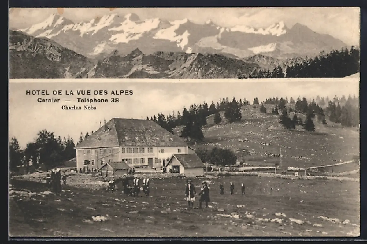 AK Cernier, Hotel de la Vue des Alpes, Bergpanorama