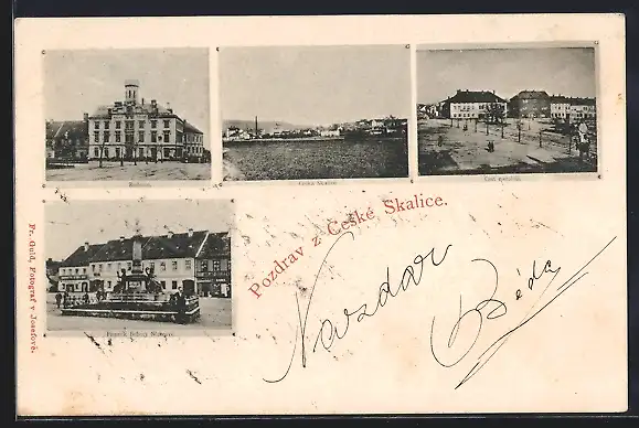 AK Ceska Skalice, Radnice, Cast namesti, Pomnik Bozeny Nemocove