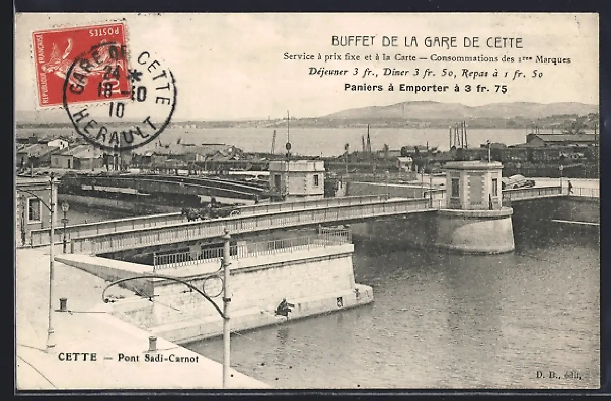 AK Cette /Hérault, Pont Sadi-Carnot et vue sur le buffet de la gare
