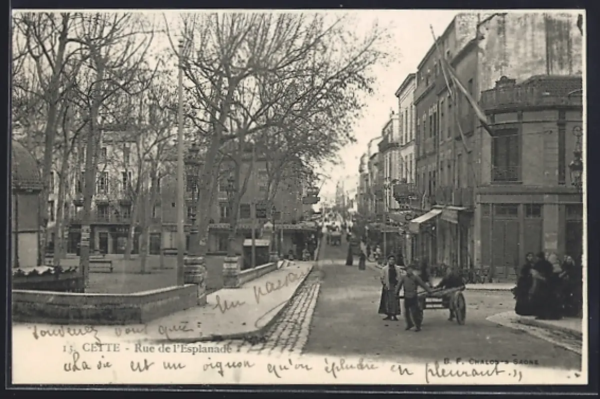 AK Cette, Rue de l`Esplanade animée avec passants et arbres sans feuilles