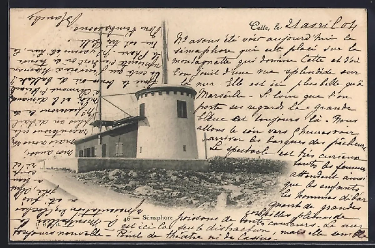 AK Cette, Sémaphore sur la côte rocheuse avec vue sur la mer