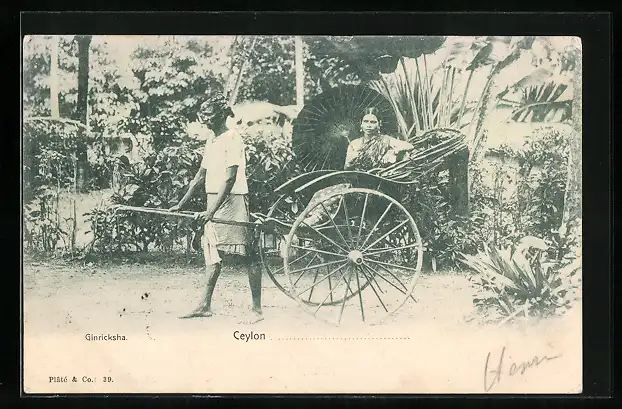 AK Ceylon, Ginricksaha, Indische Frau in einer Rikscha
